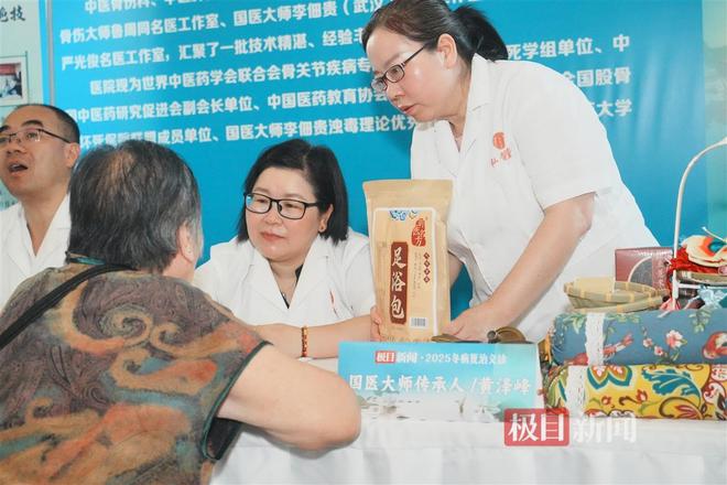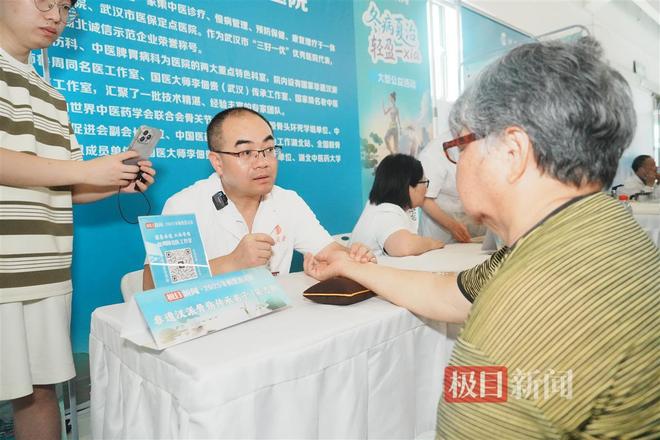 在武汉弘医堂中医医院的展位前,摆满了琳琅满目的中医特色产品,有中药茶饮、香囊、中药泡脚包、艾草捶、中药枕等供市民体验。现场还开展了国医膏方精准治胃(脾胃病)、骨王2+1(骨伤)等特色疗法体验;免费为市民敷贴三伏贴,调理慢性病。同时,该医院健康管理师团队为市民提供健康管理指导,制定个性化健康管理方案。据了解,该医院当天共接诊了130余人。